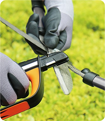 The most versatile sharpener for knife, pruner, scissors, mower blade, hedge shears, machete, hatchet, axe, edged tool, etc.