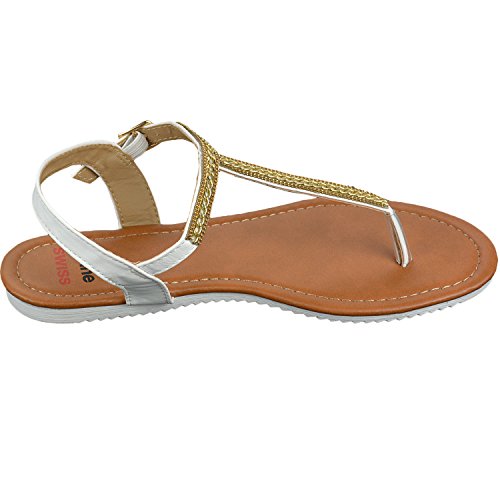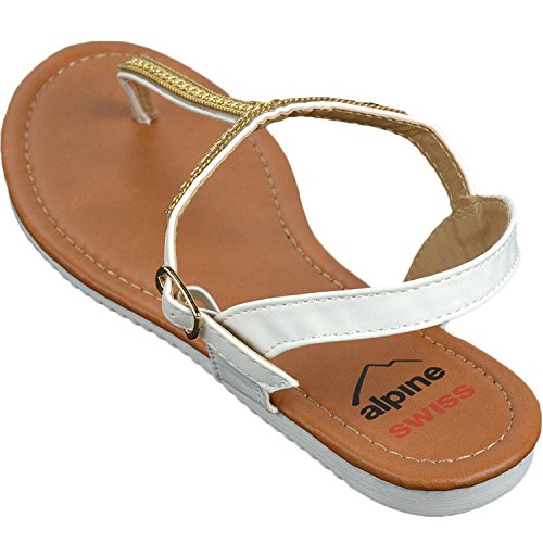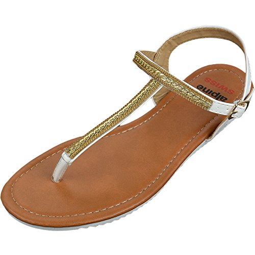 Women's Gold Accent?T-Strap?Sandals By: Alpine Swiss