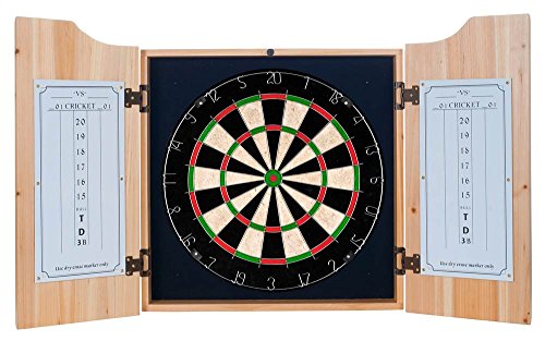 Studio : Trademark Global - Made to Order 2 Publisher : Trademark Global - Made to Order 2 Binding : Sports Product Description Bring the game to your game room, garage or collection with a custom beveled wood dart cabinet. Enjoy competition among friends while pre-gaming, during halftime, or at the after party. The custom beveled wood dart cabinet comes with everything you need for a great game. It includes a high quality, self healing sisal fiber dartboard, six steel tipped darts, dry erase Scoreboard, out Chart, marker and mounting supplies. 0