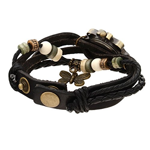 -. Feature : Made of high quality artificial leather and metal, durable and catch the fashion trend . / Multi-function , the bracelet can also be a watch.It can be your lovest bangle ,but be your watch. / It's a very nice gift choice for your girlfriend ,your mom,sister or even just yourself. / The vintage design makes you more unique and charming amoung your friends . / As summer is coming ,the classical design match to any kind of shirts,dress,and so on .