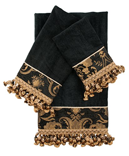 Sherry Kline 3 Piece China Art Decorative Towel Set, Black