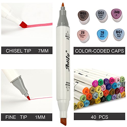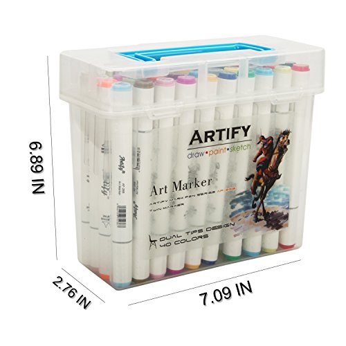 Artify Premium Art Marker Set 40 Colors Dual Tipped Twin Marker Pens with Plastic Carrying Case
