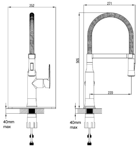 -. Feature : Küchenarmatur. Flexibler Schläuche. / Farbe/Oberfläche: Chrom / Material: Massiver Messingkörper, Hochglanz Verchrompt / Keramische Kartusche: Ja. Anschlussart: Hochdruck. / Benötigte Lochbohrung: 35 mm. Schwenkbreich (Grad): 360