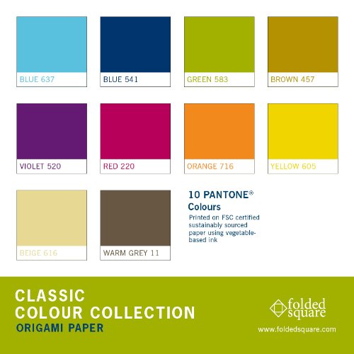-. Feature : Twenty specially selected Pantone colours / 200 sheets with a coloured front and white reverse / 6" (150mm) precision square, 80gsm weight / Environmentally friendly vegetable ink, FSC certified paper / Beautiful and innovative hand-folded spiral Origami gift box