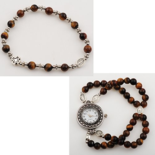 -. Feature : 6mm Tiger Eye Beads / Watch Measures 1" Diameter / Rosary Watch Set / Stretch Bracelet Type. Fits Any Wrist. / Gift Boxed