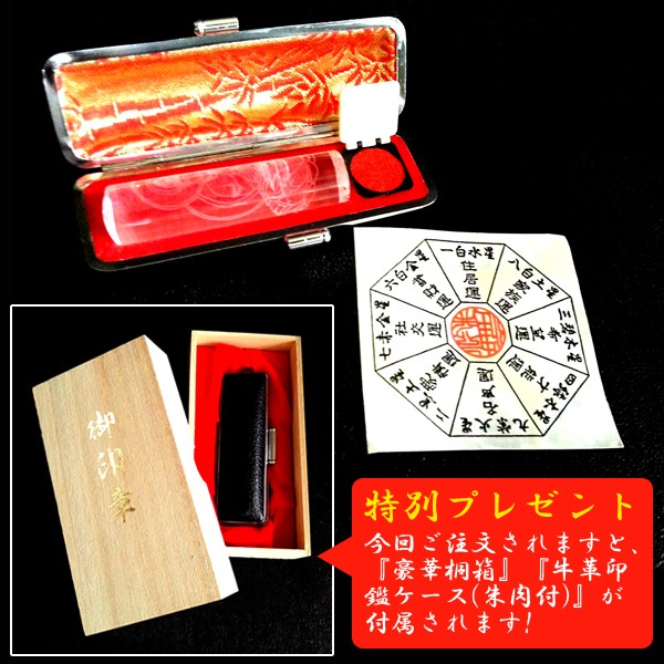 ■付属品:牛革印鑑ケース(朱肉付)、桐箱