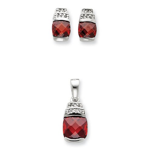 -. Title : IceCarats® Designer Jewelry Sterling Silver Red Clear Cz Pendant Earring Set