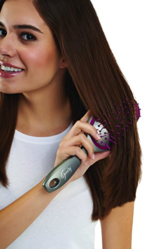 -. Binding : Health and Beauty -. Brand : Goody -. Color : Purple/Grey -. EAN : 0041457074800 -. Feature : 55% less hair breakage / Flex Glide bristles are strong enough to work through knotted hair but gentle enough to detangle without breaking strands / Flexible cushion pad for comfortable, gentle detangling without snagging / Ergonomic handle is shaped to feel good in your hand / Ball-tipped bristles are designed to be extra-gentle on your scalp -. IsAdultProduct : 0 -. Label : Goody Products- A Newell Rubbermaid Company -. Manufacturer : Goody Products- A Newell Rubbermaid Company -. MPN : 287145 -. NumberOfItems : 1 -. PackageQuantity : 1 -. PartNumber : 287145 -. ProductGroup : Beauty -. ProductTypeName : BEAUTY -. Publisher : Goody Products- A Newell Rubbermaid Company -. ReleaseDate : 2016-11-03 -. Studio : Goody Products- A Newell Rubbermaid Company -. Title : Goody Ouchless Cushion Hair Brush, Purple/Grey -. UPC : 041457074800