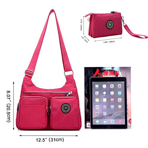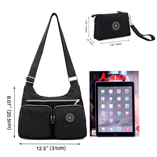-. Feature : INCLUDING - A medium crossbody bag and a purse bag.They can meet your all requirments. / MATERIAL - 100% high-quality water-resistant nylon with the properties of lightweight,smooth to the touch and easy to clean. / DIMENSION(L*W*H) - Shoulder bag is 12.5*2.8*8.07 inch,handbag is 7.3*1.6*4.7 inch.The strap width is 1.63 inch and length is 58.5 inch,it can fit different people.They are perfect for day-to-day use and occasional travel/school/shopping as a daily bag and great gift for everyone.A must have for every trip and everyday. / MULTI POCKETS - A main pocket with a compartment,fits your water bottle,umbrella,iPad and other personal belongings,two front pockets fit your cards,pens,keys and a back zipper pocket for your important belongings. / FASHION STYLE - Simple and casual design.It can be used as a crossbody bags/shoulder bag/messenger bag/tote bag/purse bags/handbags and the small bag can use as clutch bag/cell phone pouch/card bag and wristlet bag.