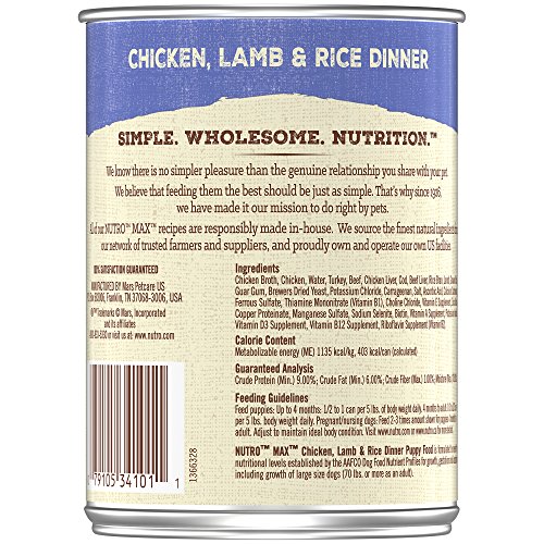 -. Title : NUTRO MAX Puppy Chicken, Lamb and Rice Dinner Canned Puppy Food, Homestyle Ground, 12.5 Ounce Cans (Pack of 12); Rich in Nutrients and Full of Flavor; Supports Healthy Digestion & Healthy Skin and Coat