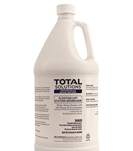 FLOATING LIFT STATION DEGREASER is a highly-effective and all-natural solution for covering offensive odors and eliminating grease accumulation in lift stations. Made with 100% d-Limonene, this product uses a non-emulsifying formula so that it floats on the surface of water to block offensive odors. As water levels rise and fall, it coats all lift station surfaces and removes heavy grease deposits from lift station walls. Dye indicates when additional product should be added. Biodegradable formula will not disrupt biological treatment processes. Features and Benefits ? Contains 100% natural d-Limonene to dissolve greases and deposits ? Floating formula acts as an "odor barrier" to lift stations to block offensive odors ? Dye indicates when additional product should be added to maintain efficacy ? Will not harm bacterial action in sewage treatment plants Directions : Complete directions on product label Pour approximately ½ gallon for each square foot of water surface directly into lift station.