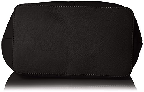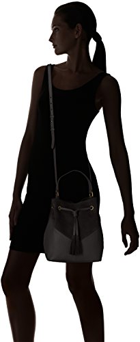 -. Feature : An Amazon brand / Panels of suede and tumbled textures bring a subtle mixed-media touch to this leather bucket bag with shoulder strap. Fringed tassels cap the drawstring closure. / Rectangular base panel maintains structured shape / 1 interior slip and 1 interior zip pocket / Gold-tone hardware / Height: 10", Length: 8.5", Depth: 5" / This bag fits a smart phone, cosmetics, full-size wallet, and keys
