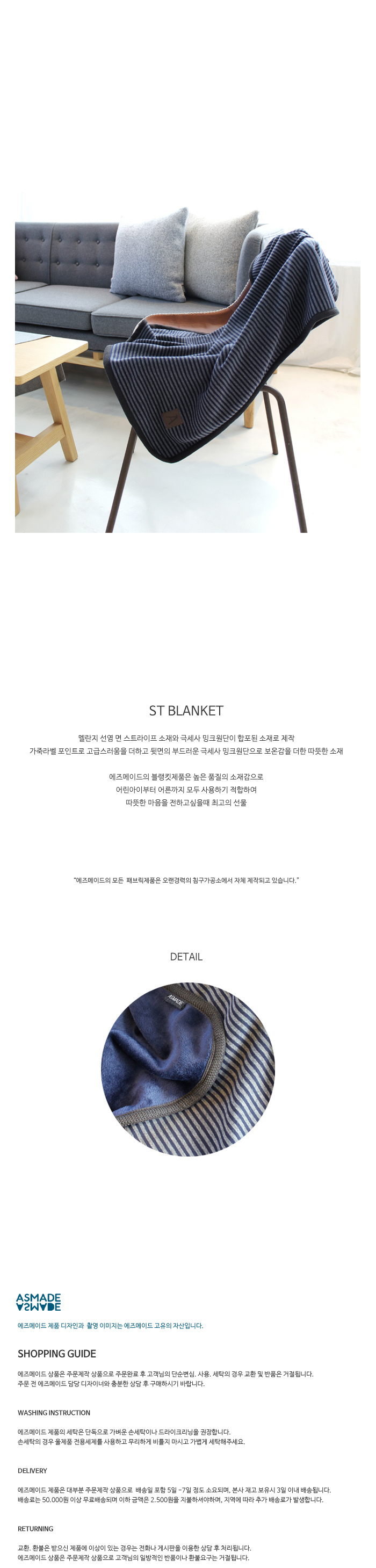 선염 면 자가드 원단과 뒷면의 부드러운 극세사 밍크원단을 더해 보온감을 높여주었습니다