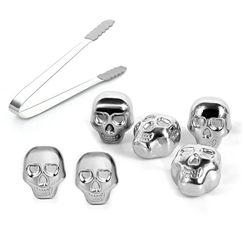 -. Brand : Yoturo -. Color : Silver -. EAN : 0190655468710 -. Feature : ✔ CHILLS WITHOUT DILUTING YOUR WHISKEY, WINE AND OTHER DRINKS. Chill your wine while retaining its flavor. Retains the cold of your drink for a longer time without diluting them. Quick chilling. Retains cool temperature. / ✔ SOLID STAINLESS STEEL MATERIAL DURABLE AND REUSABLE Made of high quality food-grade Solid Stainless Steel Material, possess FDA approval and contains natural antibacterial properties for food and drink, Never rusts or corrodes or wears, easy to wash and clean, Environment friendly. / ✔ UNIQUE DESIGN AND SMOOTH CUBES The unique skull shape Head ice cubes make them a cool novelty at parties. Great for whiskey, scotch or bourbon drinker or lovers. Smooth cubes won't scratch your glass. They are dishwasher safe and will keep their original appearance over time. / ✔ PRESENTATION BOX Suitable for any Occasion: New Years, Christmas, Valentine's Day, St Patrick's Day, Father's Day, Groomsmen, Best Man, Birthday, Halloween parties or Your Next Cocktail Party! A unique gifts for: Valentine's Day /"I am sorry" gift /wine lovers/scotch or bourbon lovers/spirit drinkers / ✔ INCLUDES PROFESSIONAL TONGS WITH NON-SLIP RUBBER SLEEVE The reusable Ice Cube Chiller come with 6pcs stainless steel skull head wine ice cubes whiskey chilling rocks and a non-slip tongs , easy to put cubes in your drink and easy to storage -. Label : Yoturo -. Manufacturer : Yoturo -. MPN : UX160449WPAYR662 -. PartNumber : UX160449WPAYR662 -. ProductGroup : Kitchen -. ProductTypeName : KITCHEN -. Publisher : Yoturo -. Studio : Yoturo -. Title : Whiskey Stones by Yoturo, Skull Head Stainless Steel Set of 6 Reusable Drink Coolers Wine Ice Cube Whiskey Chilling Rocks with Tongs for Cooling Whiskey Champagne Soda Juice Drink -. UPC : 190655468710