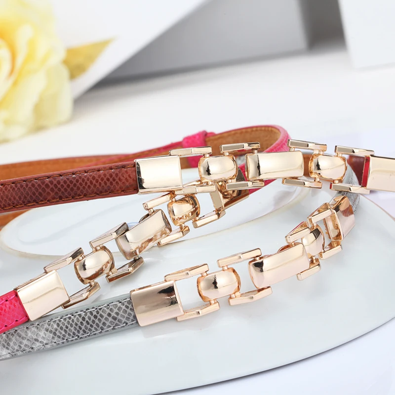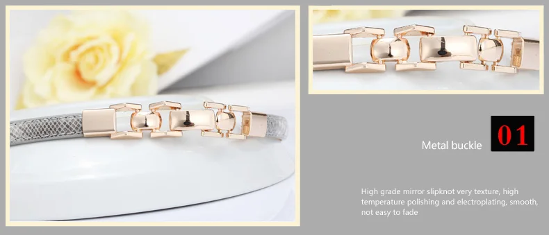 Thin Belt material:genuine leather + patent leather +hardware