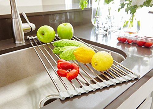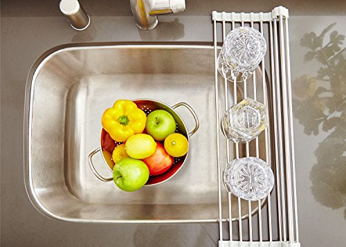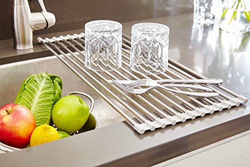 -. Brand : iEnjoyware -. Color : Grey -. EAN : 0747865514623 -. Feature : Dimensions: 21"L x 9.5"W - Perfectly for small sink and kitchen. (Kindly check your sink size before making a purchase) / Must-have space-saving gadget to streamline all your cleaning workflow. Perfect for allowing drainage after washing. Can be used for big pots, glassware, fruits and veggies colander. / Silicone-coated grip on both ends make it non-slip over your sink. / Our anti-rust dish rack will perfectly match your stainless steel kitchen sink and look classy and modern even with dishes on it. / Easy storage - Roll it up when not in use. Dishwasher-safe. -. Label : iEnjoyware -. Manufacturer : iEnjoyware -. PackageQuantity : 1 -. ProductGroup : Kitchen -. ProductTypeName : KITCHEN -. Publisher : iEnjoyware -. Studio : iEnjoyware -. Title : iEnjoyware Over the Sink Roll-Up Dish Drying Rack - 21"L x 9.5"W- Grey -. UPC : 747865514623