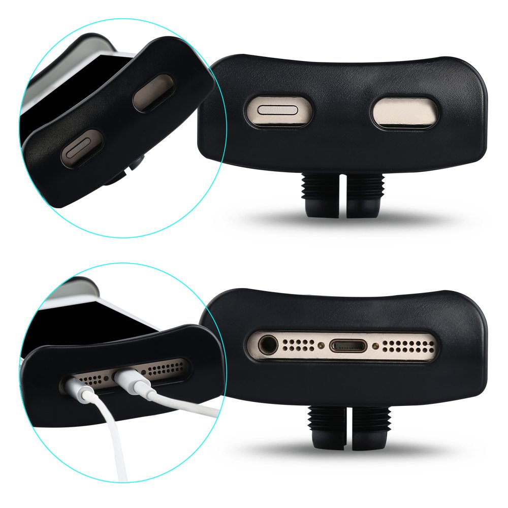 Holder made by Tryone has holes through which both sides can be seen, you can plug in the earphone and USB cable and charge it so you can solve your problems.