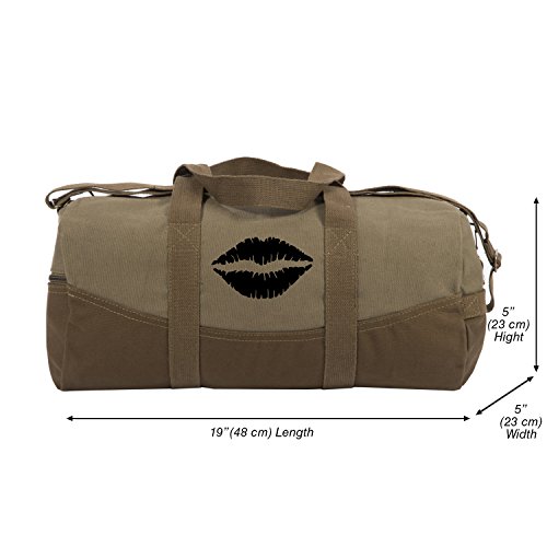 -. Title : Kiss Mark Lips Two Tone Brown 19� Canvas Duffel Bag with Detachable Strap