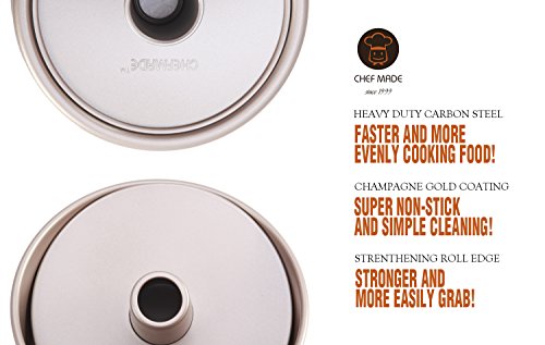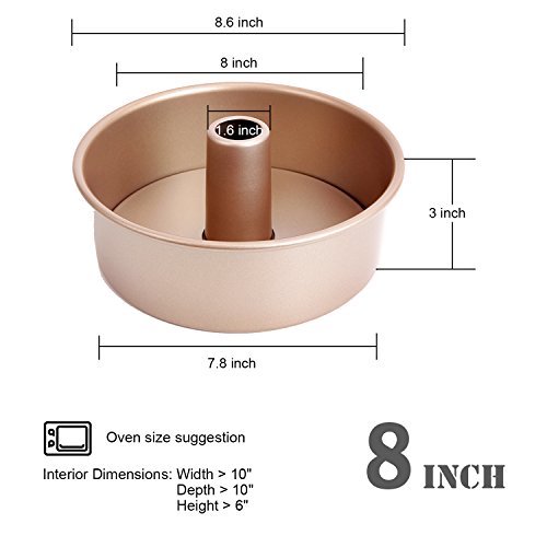 CHEFMADE 8 Inch Non-stick Angel Food Cake Pan with Removeable Bottom, Heavy Duty Tube Pan FDA Approved, Oven Roasting Baking Chiffon Mold(Champagne Gold)