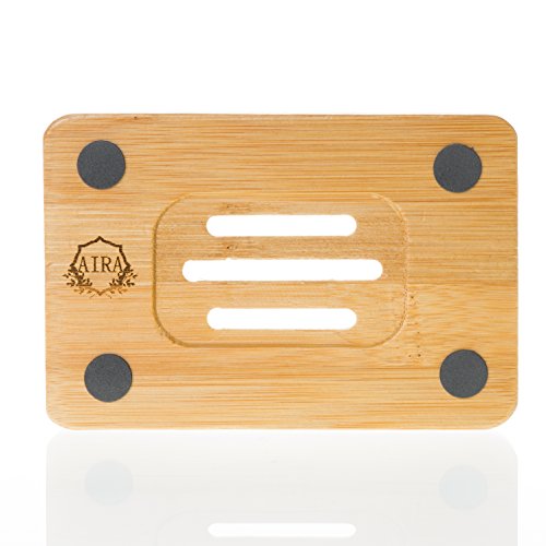 -. Feature : Keeps soap HIGH and DRY. All natural, solid bamboo raises soap off of counters, sinks, showers, and tubs. Precision cuts for maximum airflow allows soap to dry quickly and LAST AS LONG as possible. / ECO-FRIENDLY. A solid dish derived exclusively from BAMBOO ensures NO CHEMICALS leach into your soap and contaminate your skin. / Stamped with the OFFICIAL AIRA LOGO, this BEAUTIFUL bamboo wood dish with a natural color will perfectly accent any room. Dish is 4.75" by 3.25", just the right size for any soap, including the AIRA ORGANIC USA HANDMADE SOAP. Search item B01L00VVB0 / Keep your dish CLEAN and add some color with the all natural BPA free AIRA SOAP SAVER. Search item B01J6PEO2Y / CUSTOMER SATISFACTION IS OUR #1 P.R.IORITY! Our customers know Aira is a high quality premium brand. To prove this, we provide a 60 day guarantee with each Aira Soap Dish.