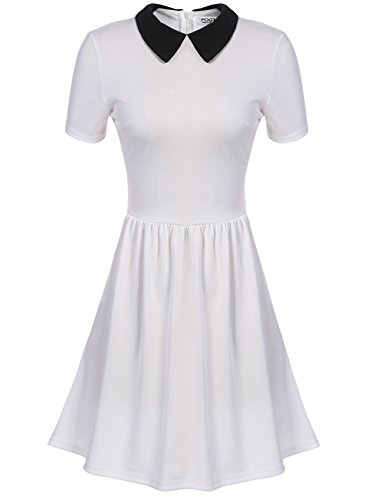 Contrast Doll Collar Short Sleeves Petite Dress Black doll collar dress, peter pan collar dress