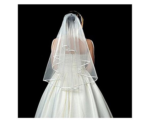 (ASTRQLE)/Styling Tools/Styling Accessories/DIRECT FROM USA/Women Lady Double Ribbon Edge Center Cascade Bridal Wedding Veil with Comb White Wedding Dress ...
