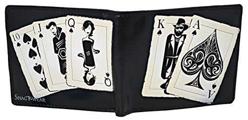 Binding : Apparel Product Description What happens in Vegas, stays in Vegas. Show your love of the city by carrying it around with you. Vegas Playing Cards men's wallet by Shagwear features: 6 credit card slots, 1 I.D. slot, 1 zippered pocked for coins, and 1 large slide pocked for cash. Wallet dimensions: 3.75" x 4.5" x 0.5" 0