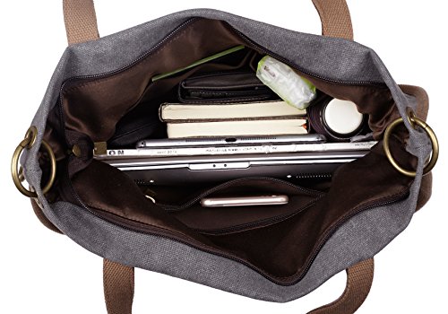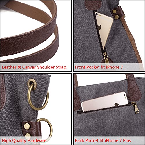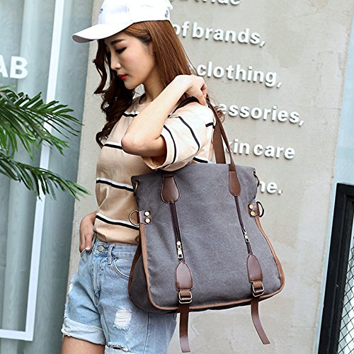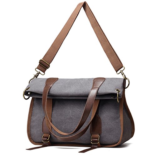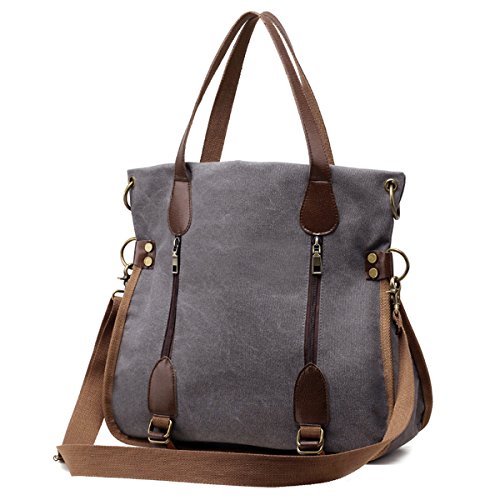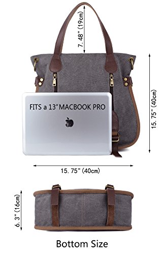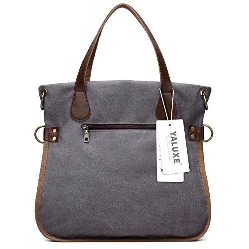-. Title : YALUXE Women's Leather Canvas Tote Convertible Crossbody Messenger Shoulder Bag Upgraded 2.0