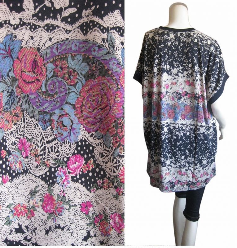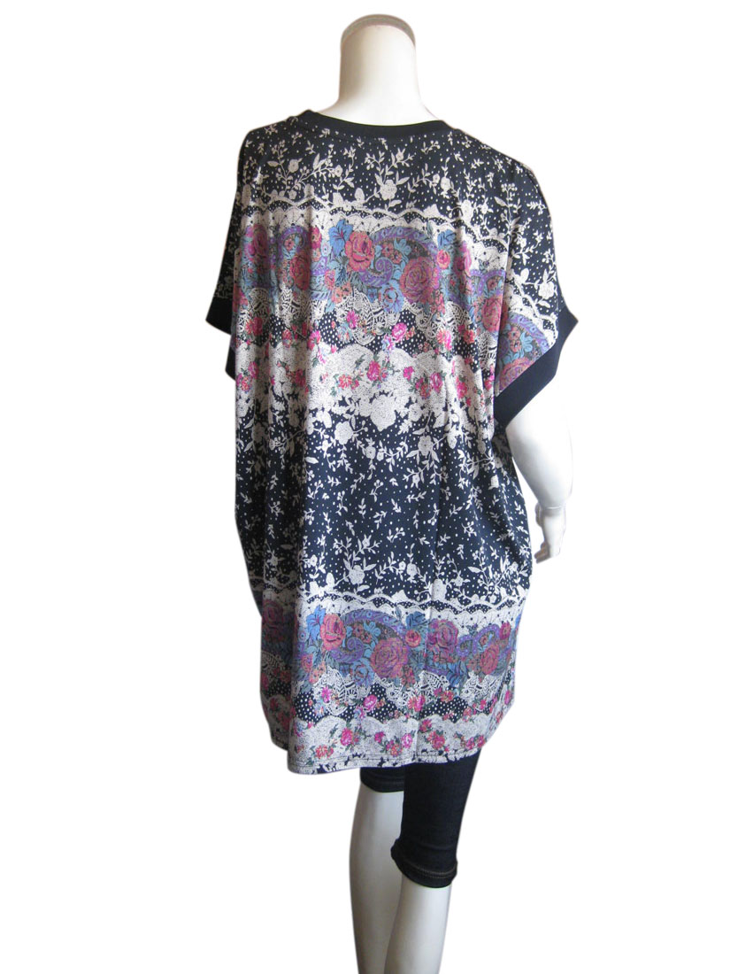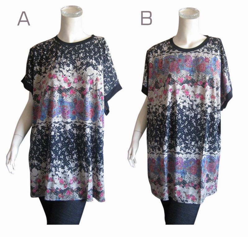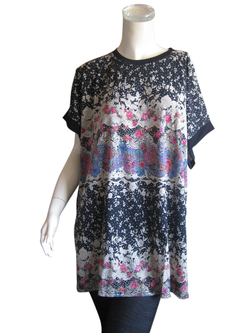 綺麗な花柄のチュニック丈カットソー(ロングTシャツ)