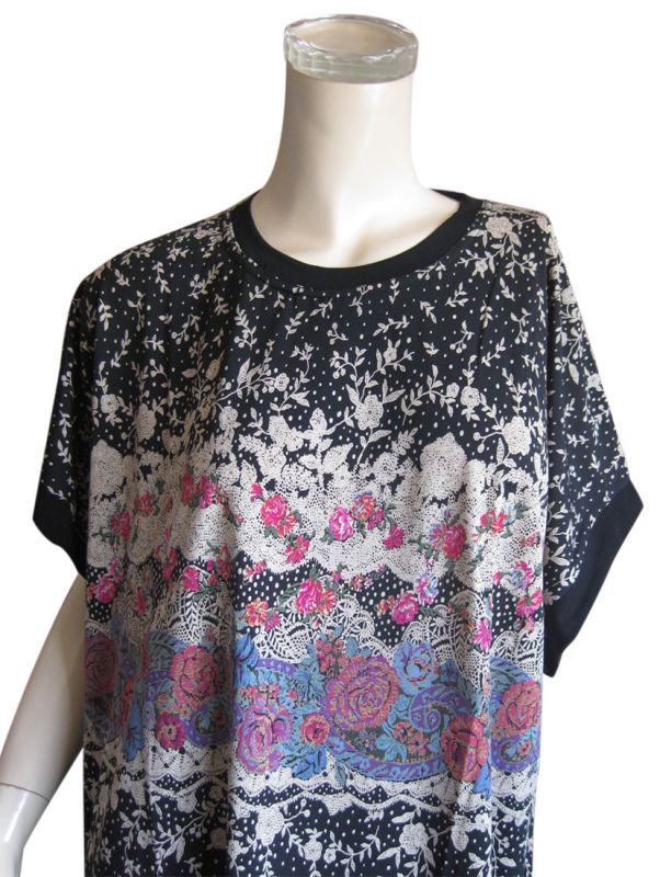 ゆったりラクチン♪★ さっと被って即お洒落★★ 夏の大定番、花柄の チュニック丈カットソーです。 しっかりした生地に、バラ、レース、ドット、 草花の深みのあるプリント♪ 透け感もほとんどないので、 一枚で上品でお洒落に決まります! 肌触りも良く、これからの季節におすすめの、 大人のカジュアルエレガントなアイテムです! ロングネックレスや、 レギンス、ジーンズとの相性も抜群です♪♪