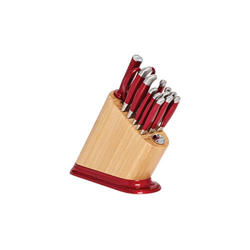 KitchenAid 14-Piece Iconic Stainless Steel Knife Block Set, Candy Apple Red