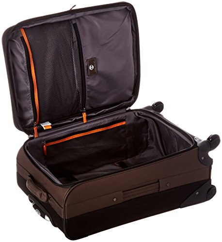 -. Feature : Telescoping trolley handles are recessed and feature a push-button locking mechanism / Suitcases expand for added packing capacity and feature two exterior zipper pockets with to, side and bottom carry handles / 24x9x16