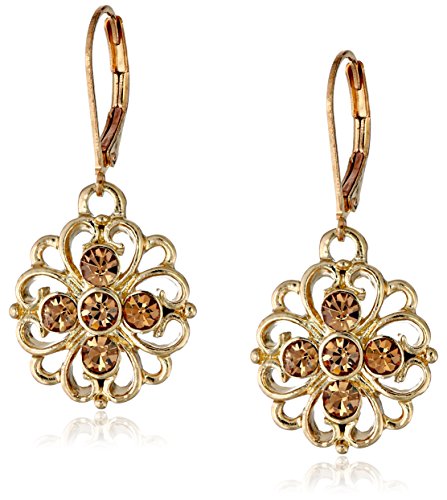-. Feature : Gold-tone filigree flower drop earrings with light topaz color stone accents / Gold-tone lever-back closures / Imported