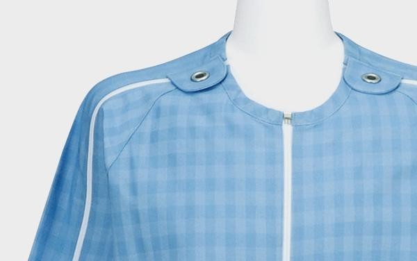 両腕にもファスナーが加わり、より着替えや清拭がスムーズに行えます。右足首から胸元のファスナーと、股部分のファスナーで、おむつ交換などの介護が楽にできます。