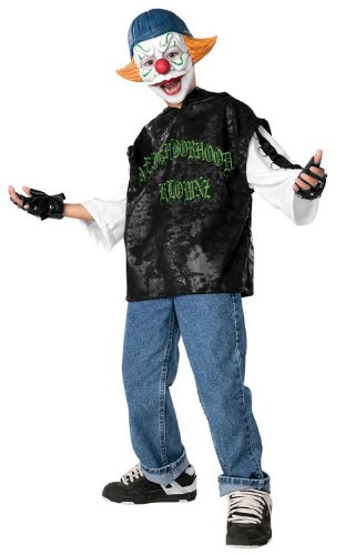 shirt mask gloves Scary Costumes - This Scary Loco Clown Costume includes the shirt with metal ring detail, vinyl 1/2 mask and the studded gloves.
