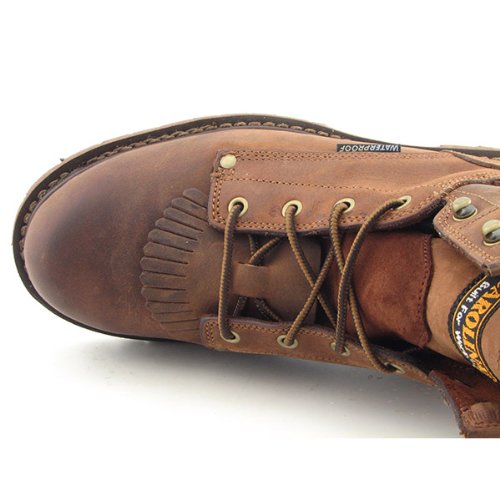 Binding : Apparel Product Description The Carolina® 6" Waterproof Grizzly Boot offers superior protection in unpredictable environments and wet conditions. Full grain leather upper. Soft toe work boot. Removable kiltie for added style. Traditional lace-up design with durable metal eyelets and speed hooks for a secure fit. Classic back pull loop for easy entry. Waterproof construction with SCUBALINER™ lining system keeps out the wet elements for a comfortably dry yet breathable foot environment. Breathable mesh lining for added comfort. Removable AG7™ polyurethane footbed provides a superior quality polyurethane comfort system with enhanced arch support and patented moisture management. Lightly cushioned textile insole for underfoot support and comfort. Triple-rib steel shank for a superior stability. Welt construction. Durable rubber outsole with pronounced lug pattern provides excellent traction. Electrical Hazard tested and can withstand applications of 14,000 volts at 60hz for one minute without leakage. Imported. Measurements: Heel Height: 1 1?2 in Weight: 2 lbs 13 oz Shaft: 6 in Platform Height: 3?4 in Product measurements were taken using size 12, width D - Medium. Please note that measurements may vary by size. 0