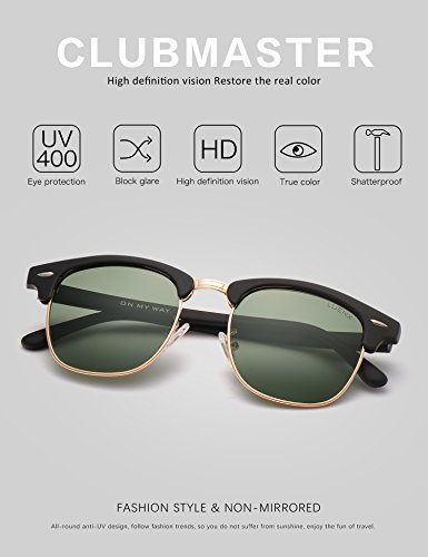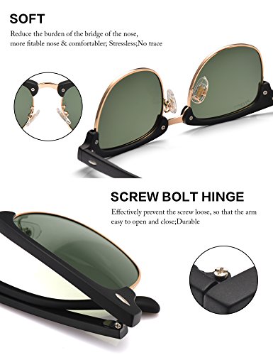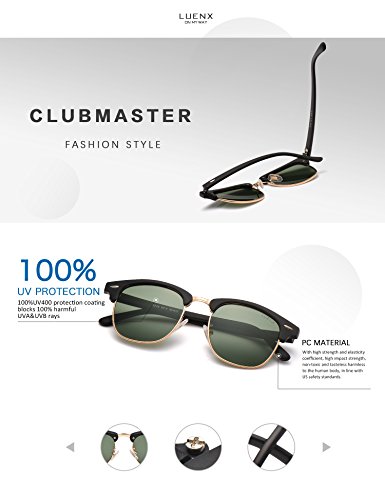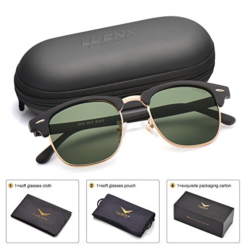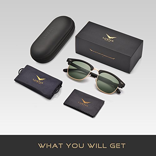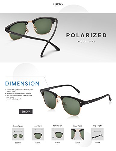 Men Clubmaster Polarized Sunglasses:UV 400 Protection 51MM,by LUENX with Case