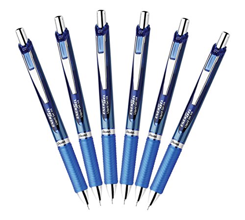 Pentel EnerGel Deluxe RTX Retractable Liquid Gel Pen, 0.7mm Medium Line, Needle Tip, Blue, Pack of 6