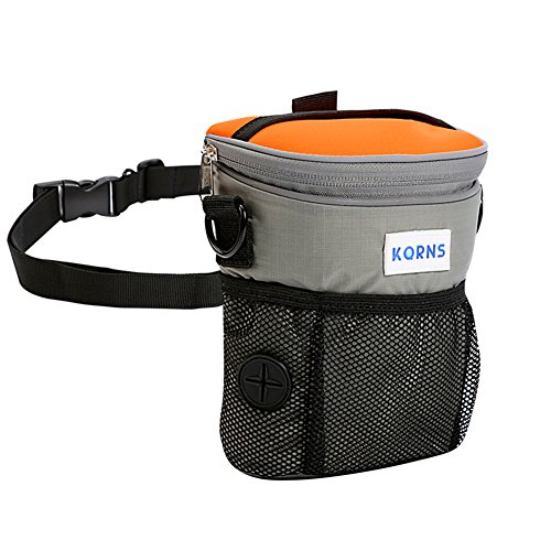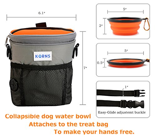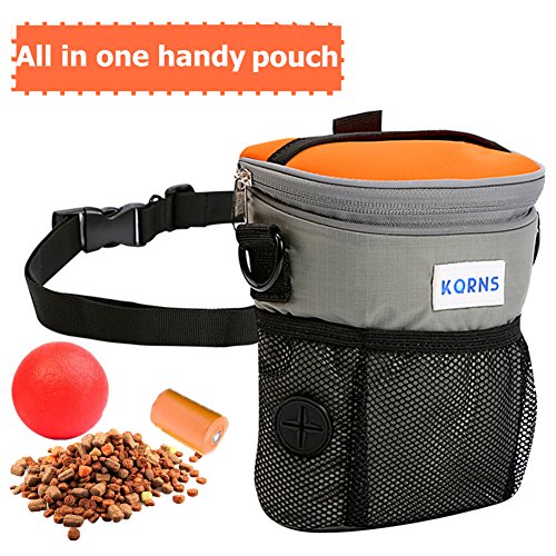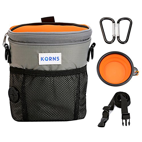 -. Title : Dog Treat Pouch for Training, Carries Toys/Kibble/Treats, Built-in Poop Bags Dispenser with Adjustable Waist Belt or Over the Shoulder Strap, Bonus Travel Collapsible Bowl ,2 Carabiner Clips by KQRNS