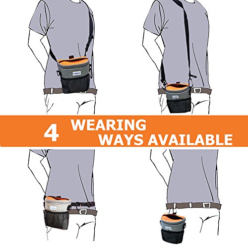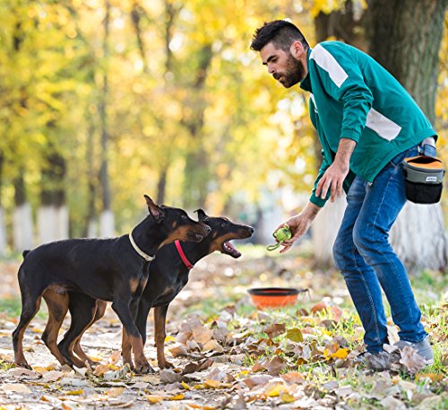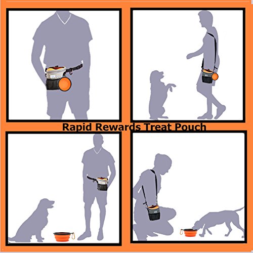 -. Feature : [Rapid Rewards Treat Pouch Bag ] Dog or puppy training become simple when you have treats at hand with leak-proof top design. It is the easy way to have everything you need for your pet, all in one handy pouch that's easy to take with you anywhere. / [Waterproof Fabric& Reflective Strips] The pet dog treat pouch is made of waterproof durable fabric with reflective strips which make it visible and safe at night. Cars and people will be easier to spot you and your pet! / [ Extra Storage & Zippered Pockets & Waste Bag Dispenser] The inner pouch have large storage space for dog treats. The front mesh netting is convenient for storing toys or small items. The back zippered pocket can hold valuables. The side built-in poop bag dispenser making clean-up easier. / [Multiple Wearing Ways ] Use the carabiners attach to D-rings, removable & adjustable waist belt or shoulder strap , you will have 4 wear option choosing for your like. / [More than a Bag ] The dog treat pouch comes also with free collapsible travel water bowl and 2 carabiner clips. Collapsible dog bowl is 13 x 5cm deep, made of BPA-free silicone for your pet's health. Order now! You will have everything in one place and always be prepared for traveling or training with your pet.