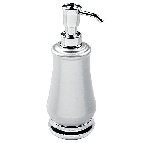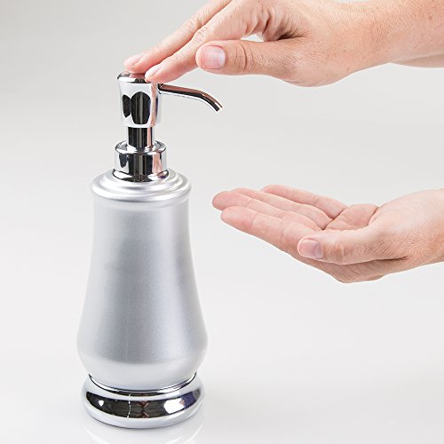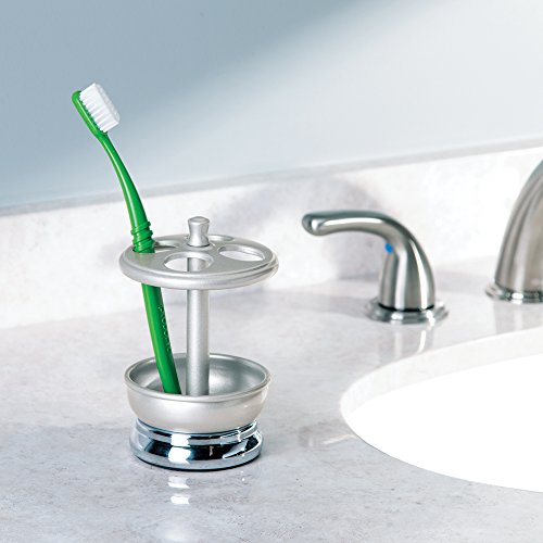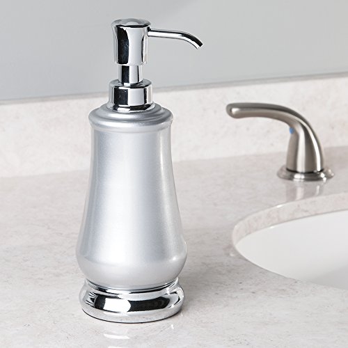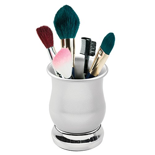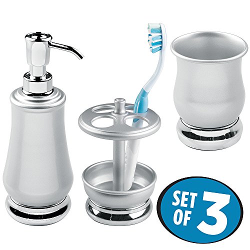 mDesign Metal Bath Accessories Set, Soap Dispenser, Toothbrush Holder Stand, Tumbler Cup - Set of 3, Pearl Silver/Chrome