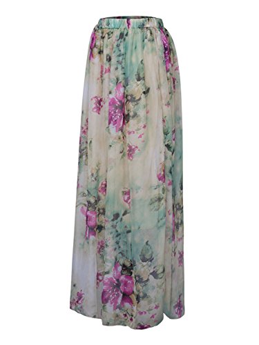 -. Title : Choies Women's Chiffon Retro Floral Pleated Bohemian Midi Skirt Flowy Maxi Skirt