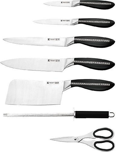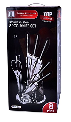 Imperial Collection Stainless Steel Kitchen Cutlery Knife Set with Rotating Acrylic Stand, 8-Piece (Black)