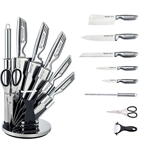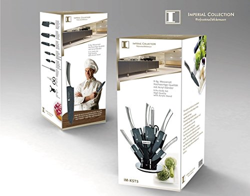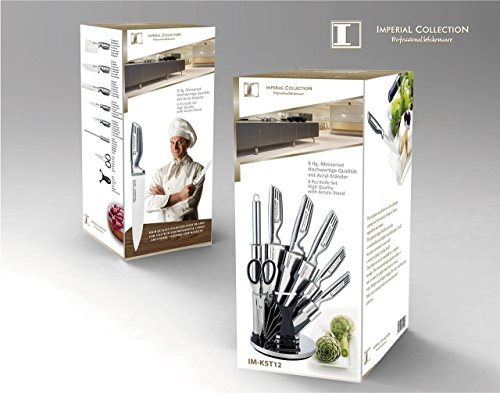 Imperial Collection Stainless Steel Kitchen Knife 9 Piece Set, and Acrylic Stand, Silver Signature