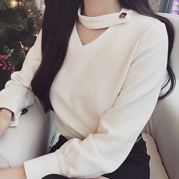 説明文チョーカーデザインがラグジュアリーなトップスです。