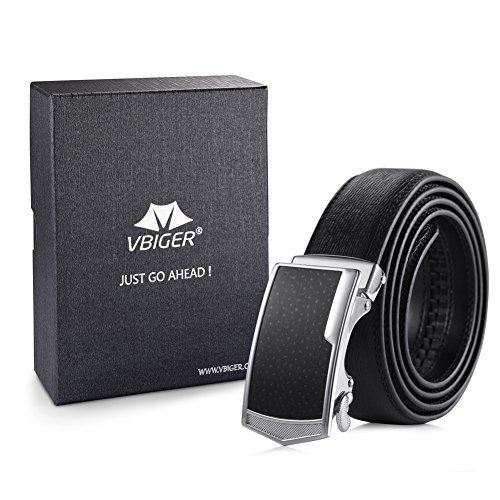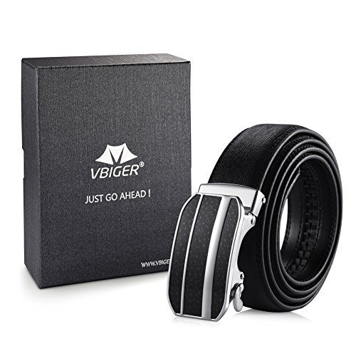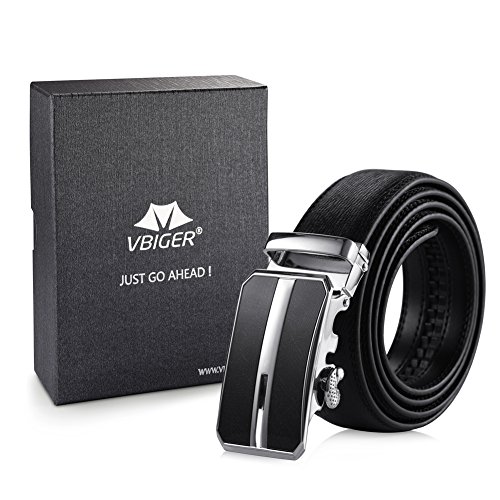 | (VBIGER)/Accessories/Belts Buckles/DIRECT FROM USA/Vbiger Men's Slide Belt Automatic Buckle Belt Leather Ratchet Black Belt |