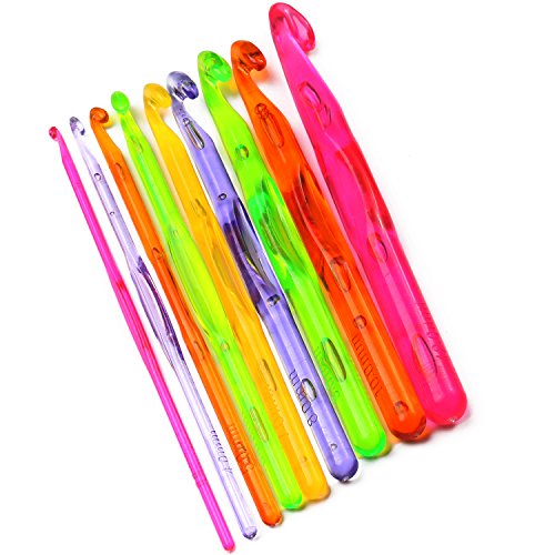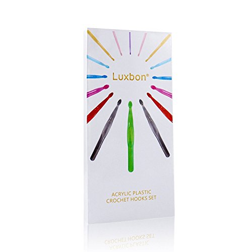 Luxbon 9 Sizes Multi-coloured Acrylic Plastic Crochet Hooks Needles Set 3mm-12mm Crocheting Starter Pack