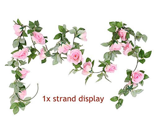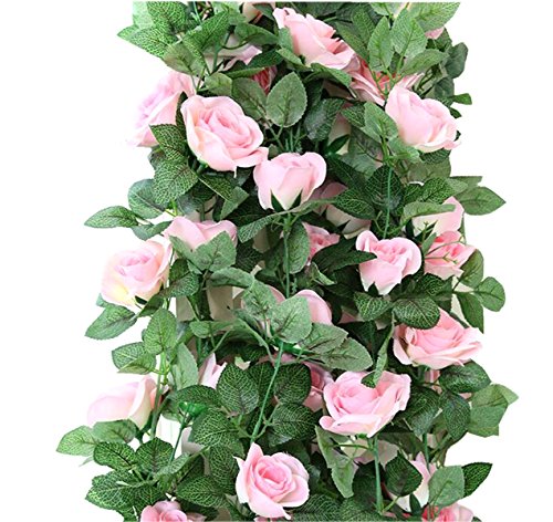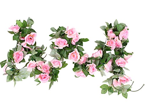 M2cbridge Artificial Silk Rose Garland Flower Ivy Garland 86" Home Hanging Wedding Decor, 2 Strands (Light Pink)