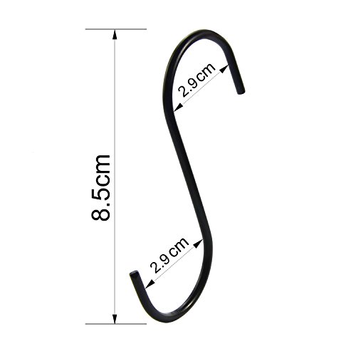 • STYLISH: The stylish,Black Antistatic Coating design complements any kitchen, workshop, or outdoor area. If you're looking to upgrade/update your kitchen or work area, the S hook will go a long way in improving both the professional look and aesthetic appeal of any room. And don't worry about spending a ton of money to get the polished, organized look you desire because these sturdy S hooks are affordable and made to last.