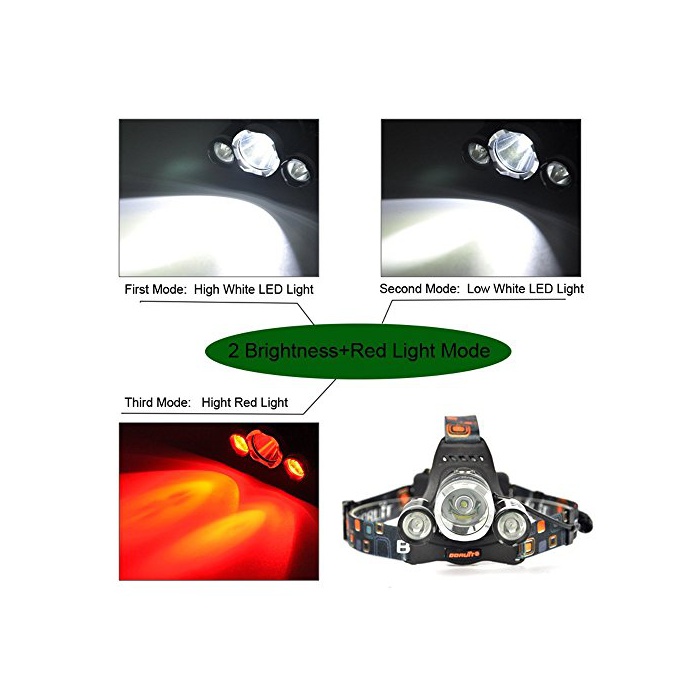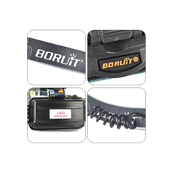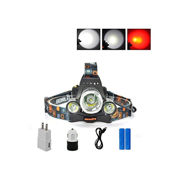 BORUIT CREE헤드라이트 5000LM 3모드 3등 CREE 1T6+2R2 LED 충전식 방수 밤낚시 방수 /등산 / 밤낚시/캠프 18650전지 부착